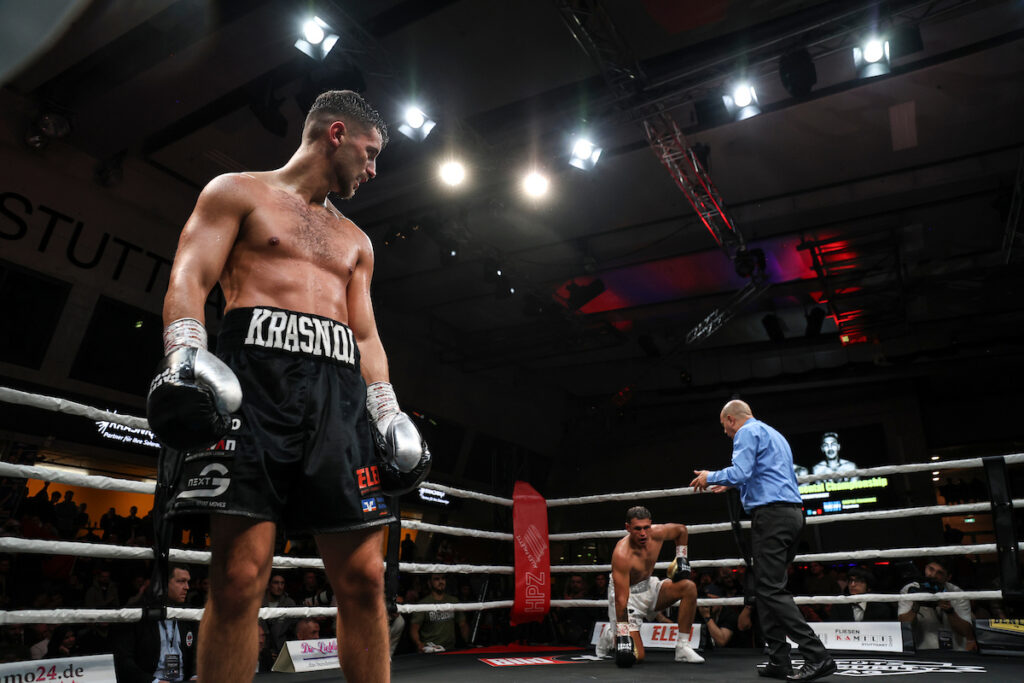 Ardian Krasniqi puso otro signo de exclamación a su todavía joven carrera profesional en una velada de boxeo de alto nivel como parte de Showdown for Legacy III en el Scharrena de Stuttgart. El peso semipesado germano-kosovar defendió de forma impresionante su título Intercontinental de la OMB contra Gaspar Fernández el sábado por la noche y se mantuvo invicto en su duodécimo combate, de nuevo por nocaut.