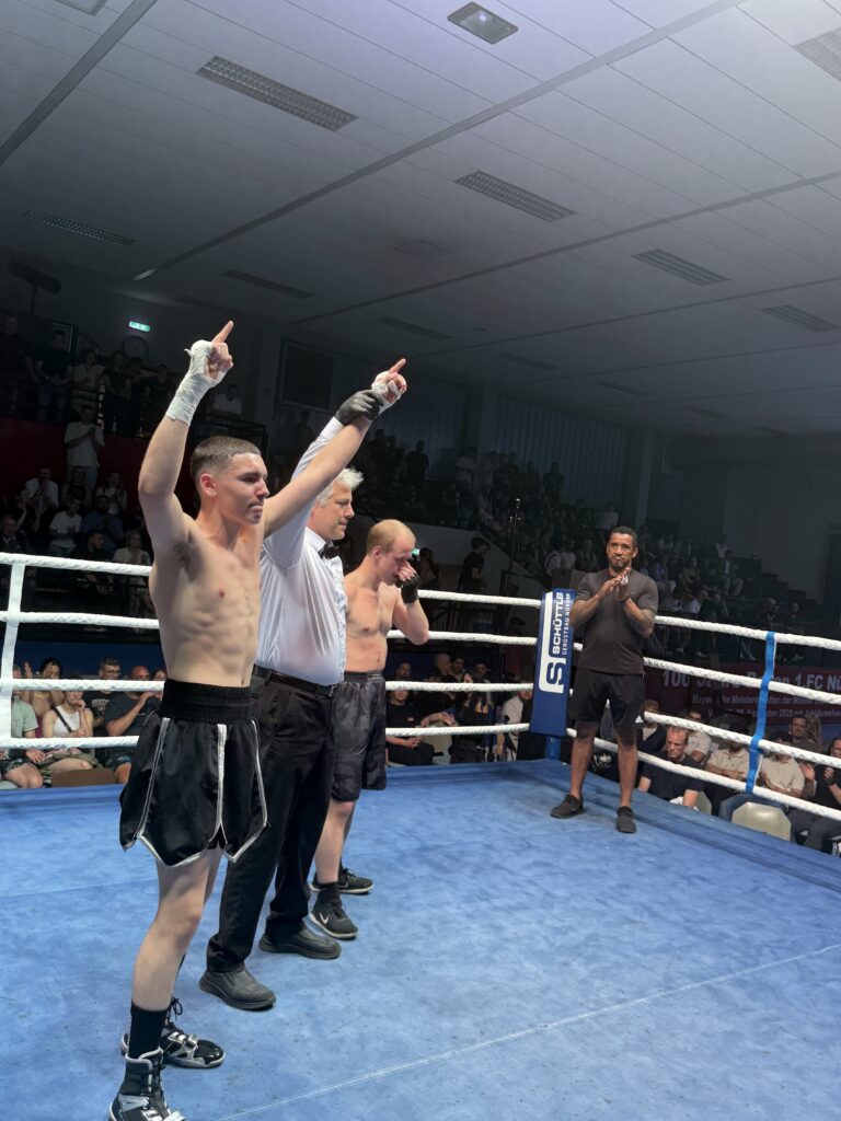 Drei Wochen später dann das offizielle Debüt bei der „Boxclub 1. FCN Warriors Night“ in Nürnberg. Im Weltergewicht bis 67 Kilogramm. Ein Fight angesetzt auf vier Runden. Sein Gegner Constantin Albrecht, 22, gleichfalls Debütant, gleichfalls Schachboxer. Aber chancenlos. Athletisch, konditionell, mental – und vor allem boxerisch. Der junge Rolle dominierte das Duell von der Ringmitte aus, stand stabil, agierte aus einer gesicherten Doppeldeckung, stieß explosionsartig vor, landete klare und harte Hände. Das Resultat: Technischer Knockout in Runde zwei.