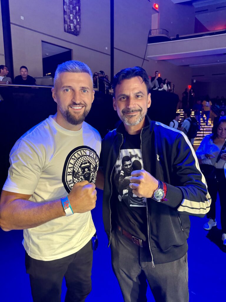 BOXSPORT-Autor Andreas Selak trifft in Las Vegas Box-Größen wie Carl Froch (l.). (Foto: privat)