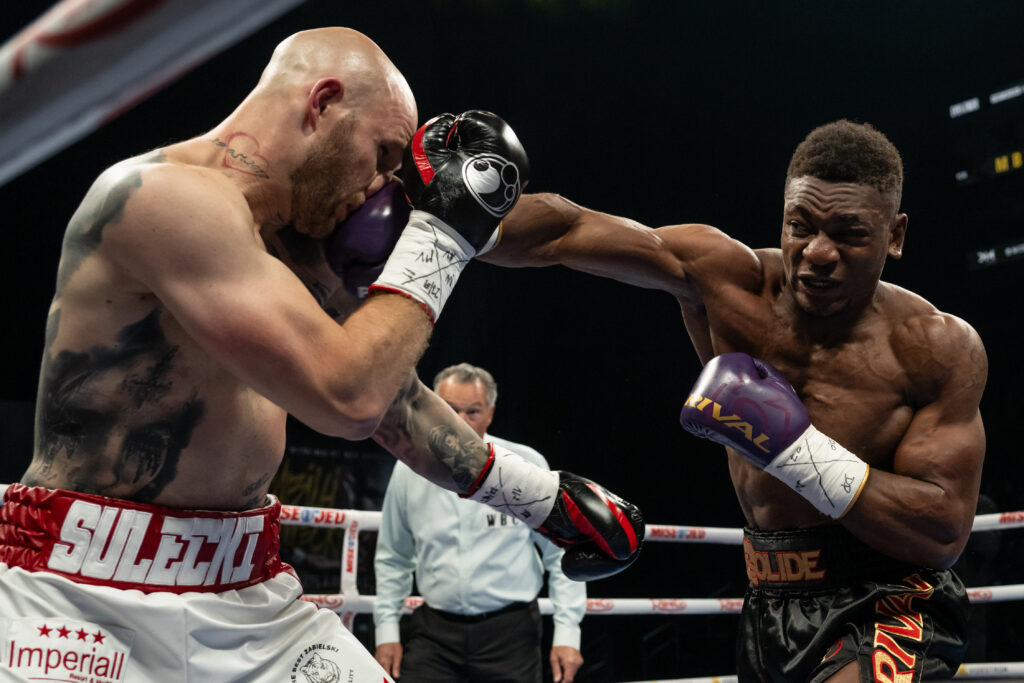Mbilli (29-0, 24 nocauts) no dejó lugar a dudas sobre sus ambiciones desde el principio. Atacó a Sulecki (33-4, 13 nocauts) con un agresivo impulso hacia delante y asestó duros golpes a la cabeza y al cuerpo. Después de que dos derechazos en contra dieran en el blanco, Mbilli empujó a su oponente contra las cuerdas y asestó una serie explosiva de puñetazos al cuerpo, seguida de un uppercut de derecha que envió a Sulecki al suelo. Aunque el polaco consiguió ponerse en pie temblorosamente, el árbitro Michael Griffin vio suficiente y detuvo el duelo a los 2:28 minutos del primer asalto.