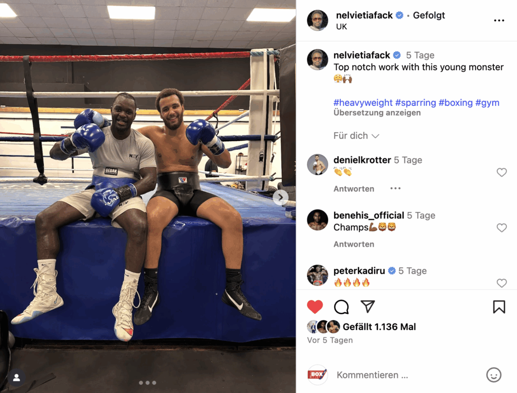 Der Post der Woche kommt heute von Nelvie Tiafack, der Moses Itauma als Sparringspartner auf dessen Duell mit Dillian Whyte vorbereitet hat.