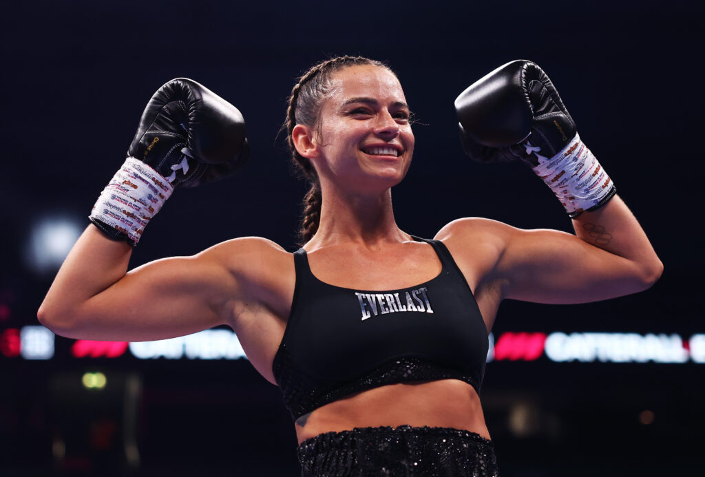 Skye Nicholson, del peso supergallo, derrotó a la mexicana Yuliahn Luna Ávila por unanimidad a los puntos para hacerse con el cinturón de campeona mundial interina del CMB. (Foto: Getty Images)