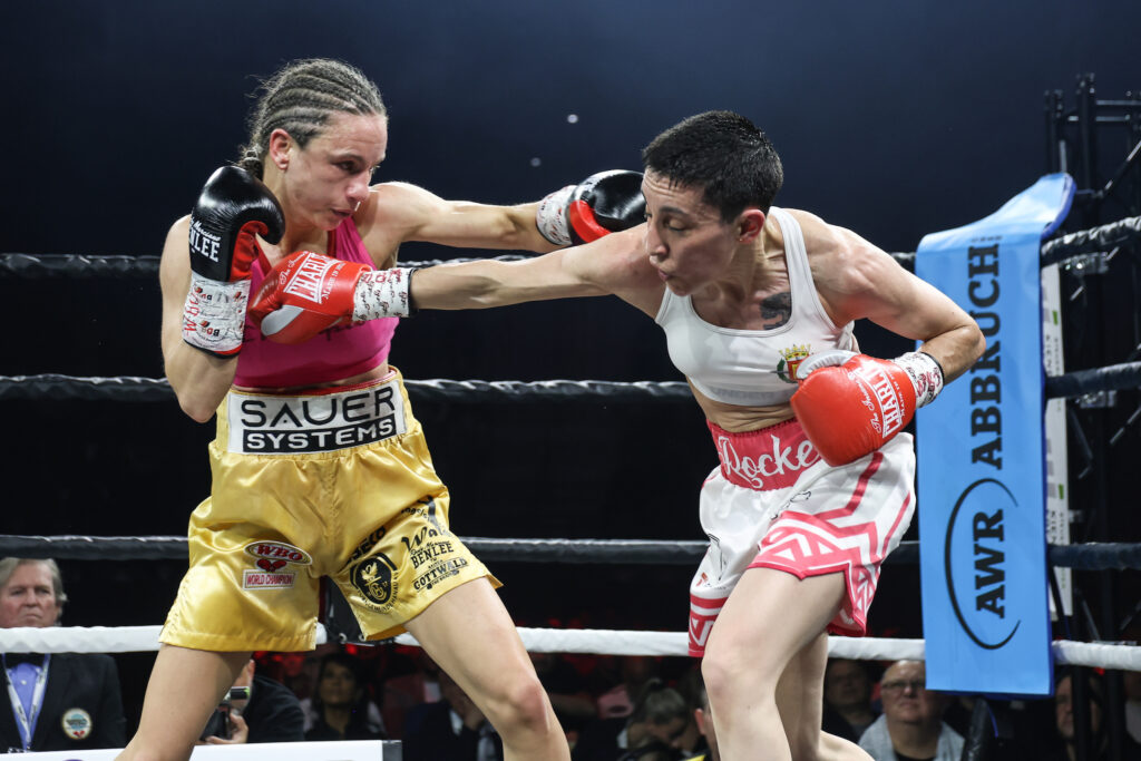 WBO world champion Sarah Bormann (l.) recently defended her title against Spain’s Isabel Rivero (r.). (Photo: Torsten Helmke)